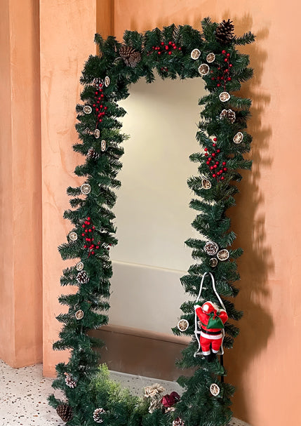 Decorative Christmas Pine Holiday Santa Claus DIY Mirror